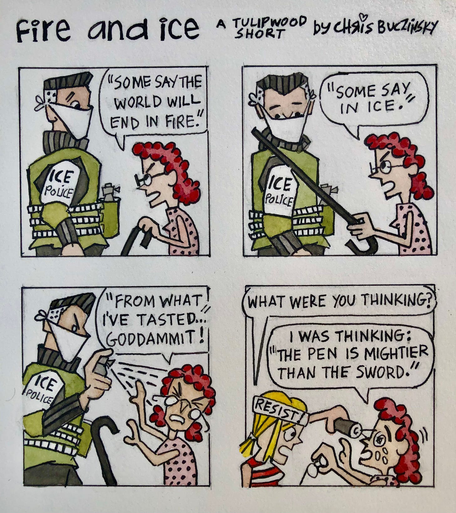 Anyway, here is the poem in its entirety, before Ice Agent interrupted Miss Fire’s recital with his pepper spray.